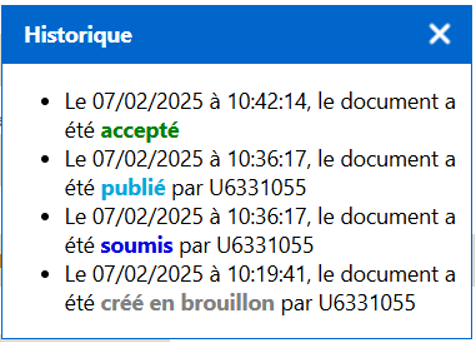 Le champ « Statut » dont la valeur est cliquable me permet d'afficher l'historique de la demande.