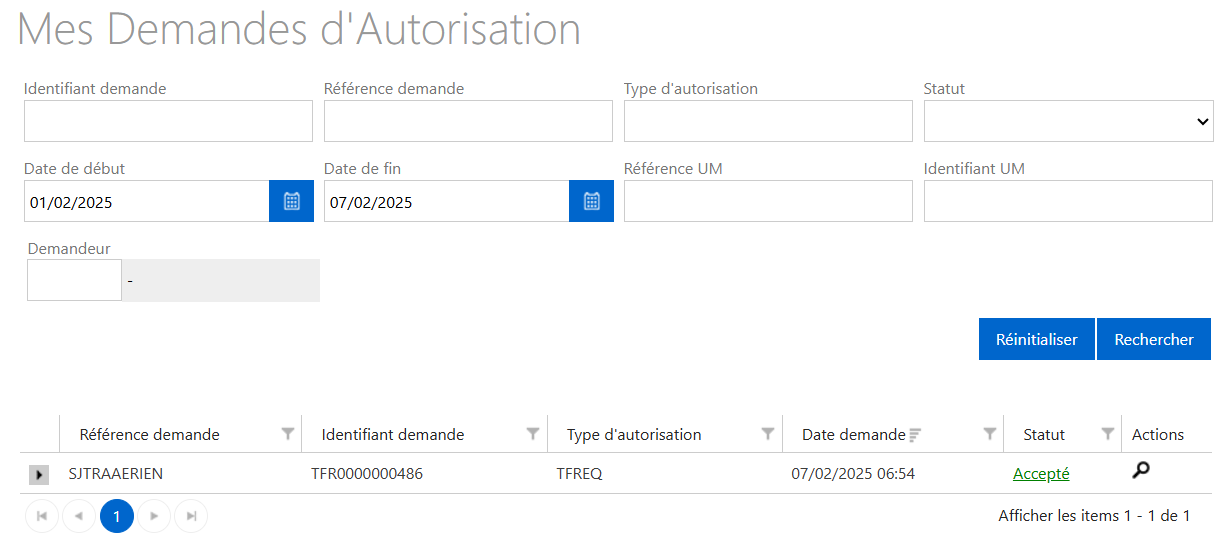 En tant que compagnie aérienne ou en tant que commissionnaire de transport, je peux consulter une demande de transfert dans mon dossier ou parmi toutes mes demandes d'autorisations.