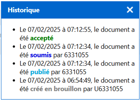 Le champ « Statut » dont la valeur est cliquable me permet d'afficher l'historique de la demande.