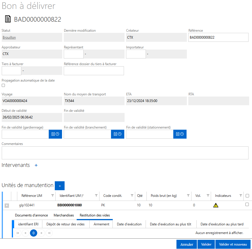 Accueil > Module Logistics > Tous mes dossiers > Dépotage > Créer un bon à délivrer