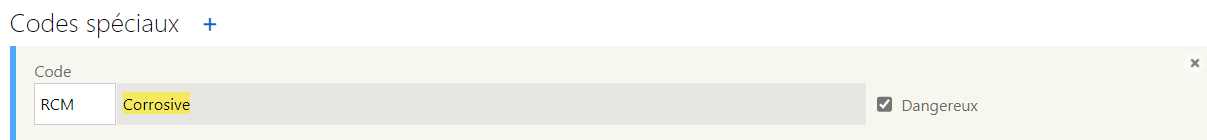 Je saisis le code ou le libellé grâce à l'autocomplétion ex. : RCM Corrosive.