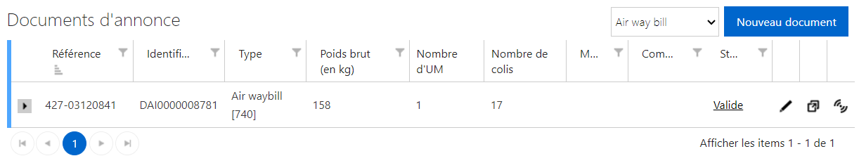 Accueil > Logistics > Tous mes dossiers > Cargo In > Nouveau document