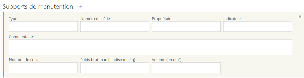 Je clique sur l'icône « + » pour ouvrir le formulaire « Supports de manutention ».