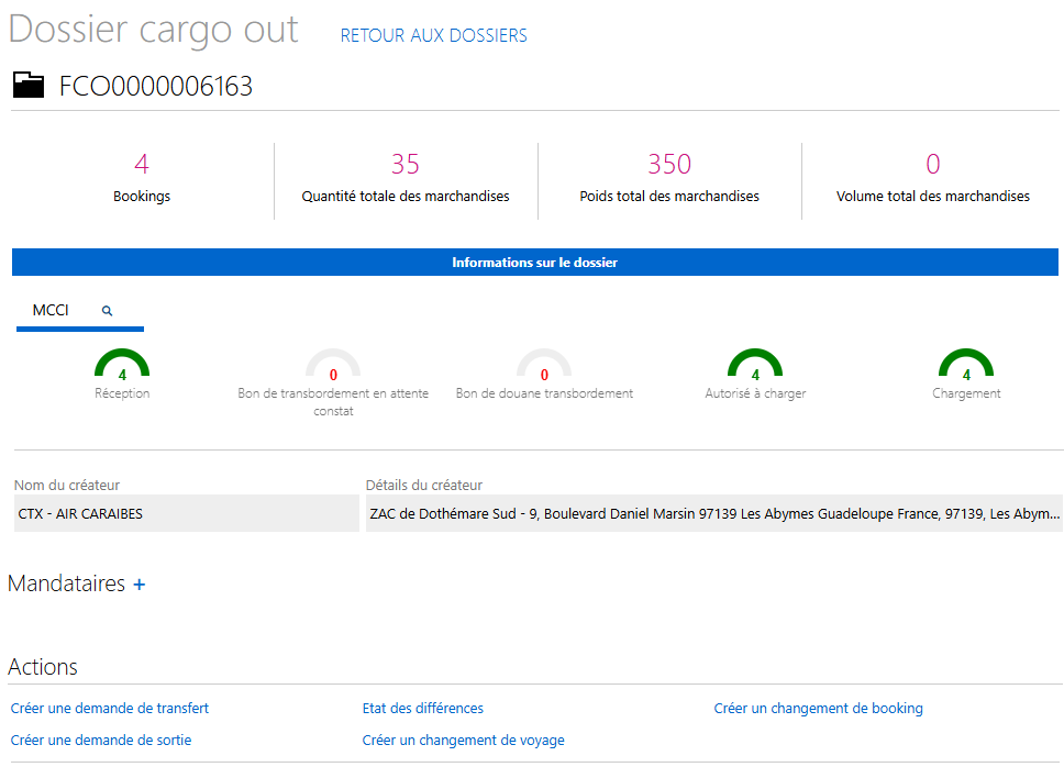 Accueil > Tous mes dossiers > Cargo Out