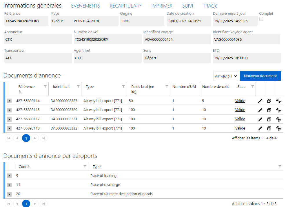 - le bloc « Documents d’annonce par aéroports » ;
