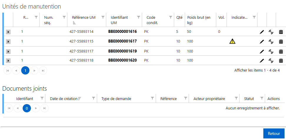 - le bloc « Documents joints » qui s’enrichit au fur et à mesure des actions effectuées.