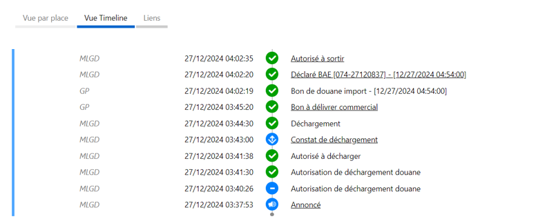 Les informations sont visibles dans la Vue par place et la vue Timeline.