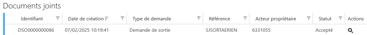 Je peux consulter ma demande de sortie en cliquant sur l’icône « loupe ».