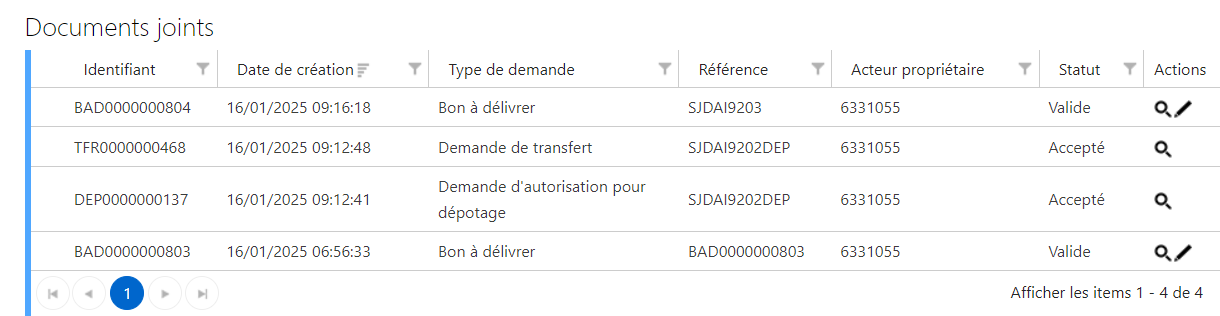 Le statut de ma demande d’autorisation pour dépotage est passé de « Soumis » à « Accepté ».